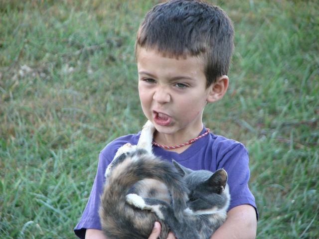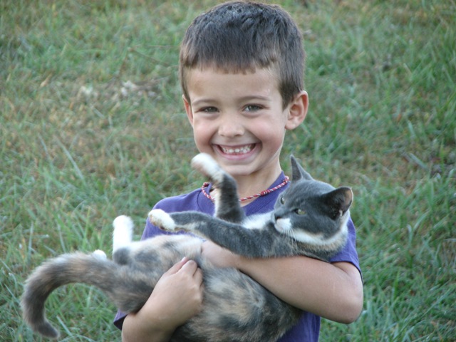 Here are some pictures of #2 and the cat. They’ve never really named her. I’ve hear everything – cat, girl, Molly….