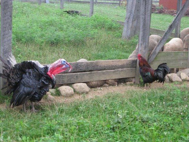 This turkey didn’t care too much for the rooster being in the same pen.