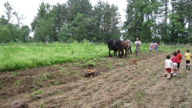 The farmers were plowing up potatoes and everyone was invited to dig them up out of the dirt. They let us take 6 spuds per family and the rest they were taking to the local food bank.