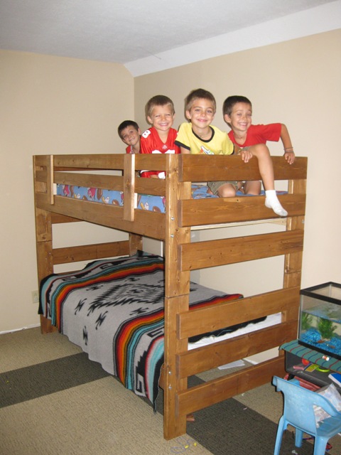Yes, since I have so much free time, I thought I’d start yet another business. 1.800 Bunkbed, simple enough. These are custom built bunk beds with many different styles. This one I made for the boys is a stackable (two twins). They are solid 2×6 construction and come with a lifetime guarantee. You can check out the other styles here. If you are in the market or know someone who is, give me a call 1-800 Bunkbed (in the 614 area code) or 740-603-4962