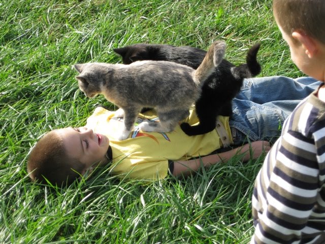 There are two boys in this picture. Can you find the other one. He has his camo on.