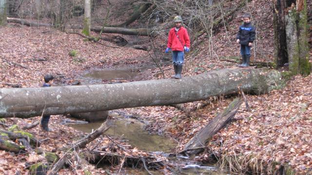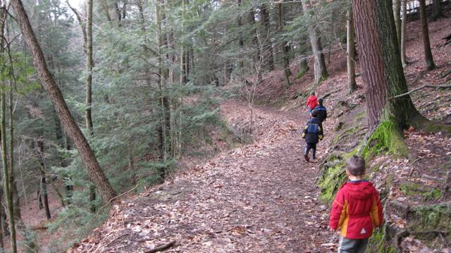 Hiking above the falls. Notice everyone has strict orders to stay right (away from the 100+ ft drop over the edge).
