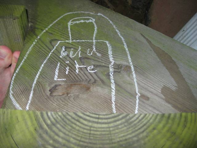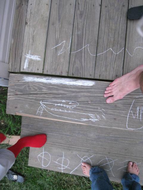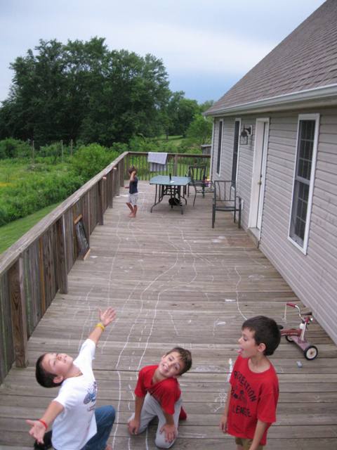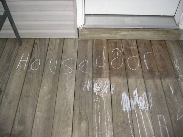 This is our 10 foot high, 500+ square foot deck, play-pen, and tonight…chalkboard.
