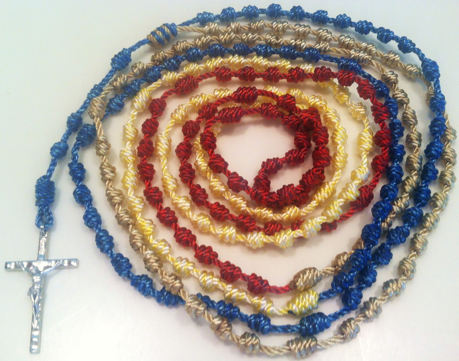This is a custom made rosary that was recently ordered. It is a 20-decade rosary with each mystery a different color: Joyful – Blessed Blue, Luminous – Papal, Sorrowful – Crimson, Glorious – Golden Tan. I really enjoyed making this rosary and meditating on how all of the mysteries are intertwined. God bless you all – Jim