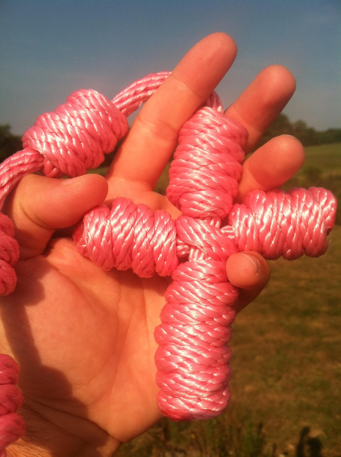 This is the cross for the giant pink wall rosary. It’s really not that bright of pink, the sun is just reflecting off of it I think. Get yours at http://www.realliferosary.com