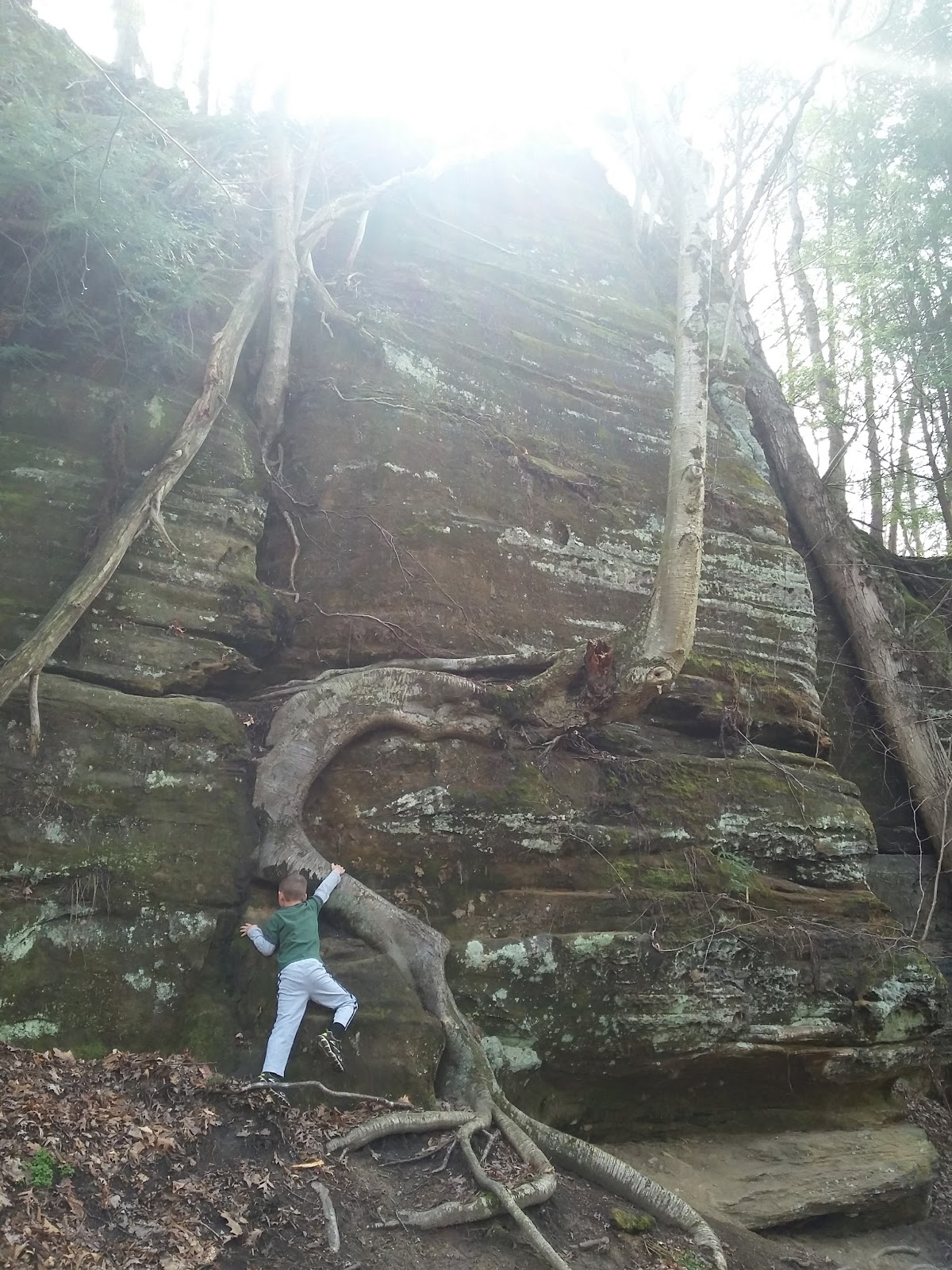 On Sunday, we got up and had pancakes, eggs, and our bacon. Then we headed out to the Blackhand Gorge State Nature Preserve near Newark, OH. It’s a nice place but crowded. I think there is a lot more to explore but it’s difficult when you have such an age range and skill level.
