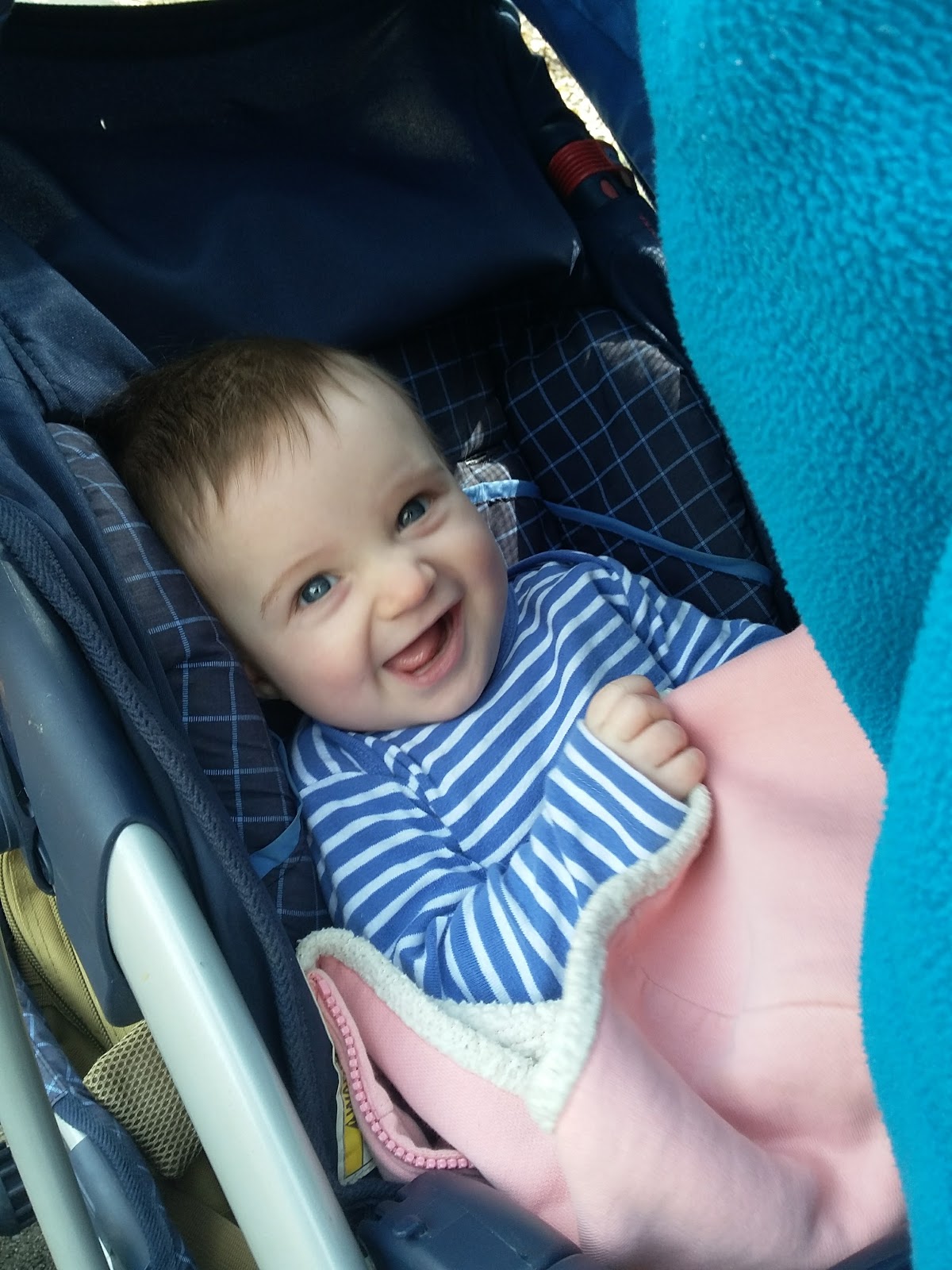 | She has a bad cold but didn’t want to go inside and miss anything. |
