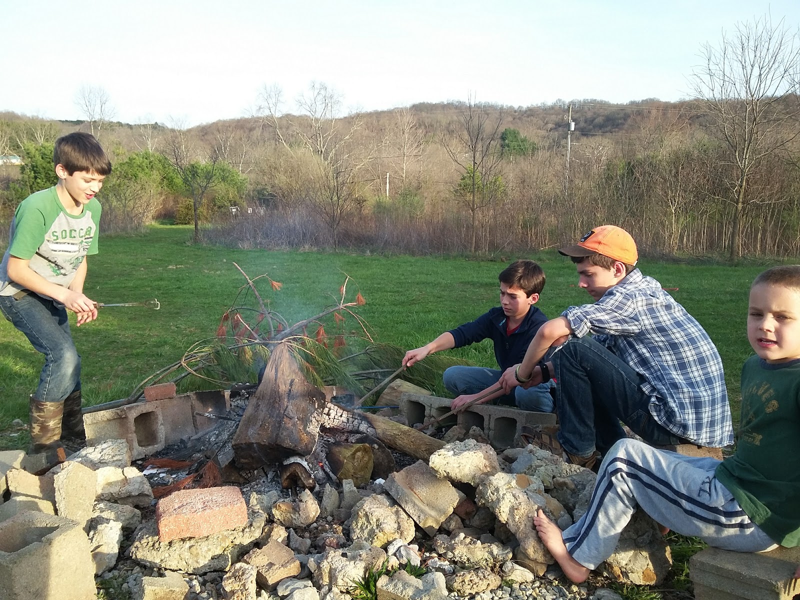 Back home there were chores to do. Even S & B worked hard to get things done before enjoying an evening fire and hotdogs.