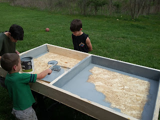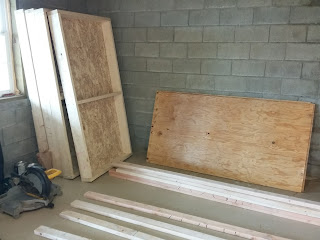 On the bottom of each frame we’ve stapled and glued a 1/4″ OSB (not Order of Saint Benedict) board. On the top we’ll have 15/16″ plywood. The plywood will be hinged allowing for it to be lifted and revealing two 37x40x6 storage compartments for all the junk these pack-rats collect.