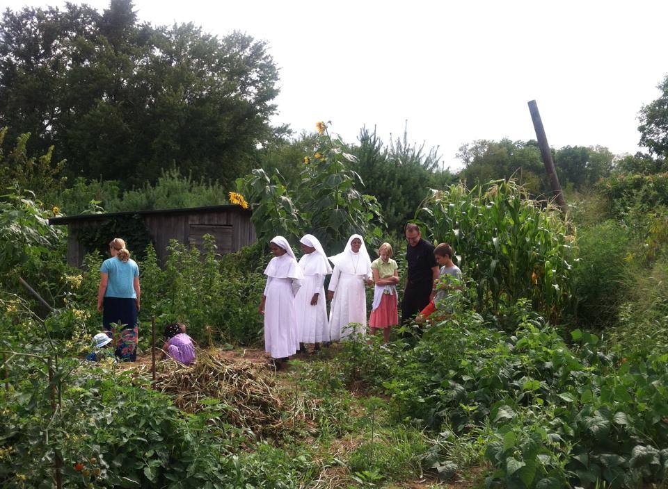 | Franciscan Sisters of the Immaculate Heart of Mary with Fr. Hahn in our vegetable garden. |