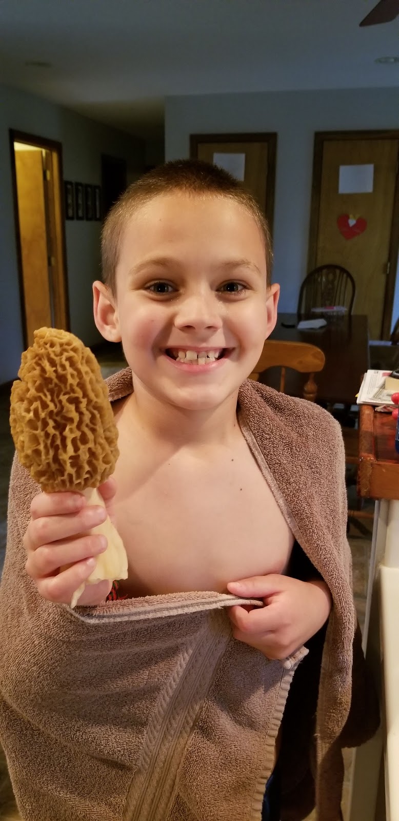 We had a pretty strong storm roll through Thursday night while the boys were swimming in the creek. D happened upon this gem of a mushroom (morel) definitely large enough for a sandwich.