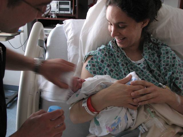 After all was set in place and all plans mapped out, the busybodies slowly disappeared leaving Nicole and I alone in the room to prepare for the inevitable moment of her hour. Between contractions we talked, laughed, and prayed. She held my hand and comforted me. I think I tried to do the same for her. Outside the door a man in black paced the floor fingering worn wooden beads in one hand and a vial of Holy Water in the other.