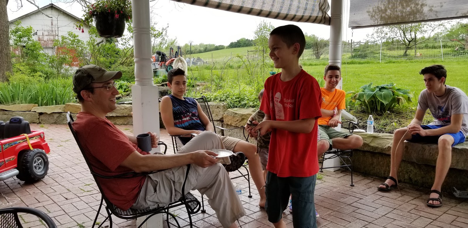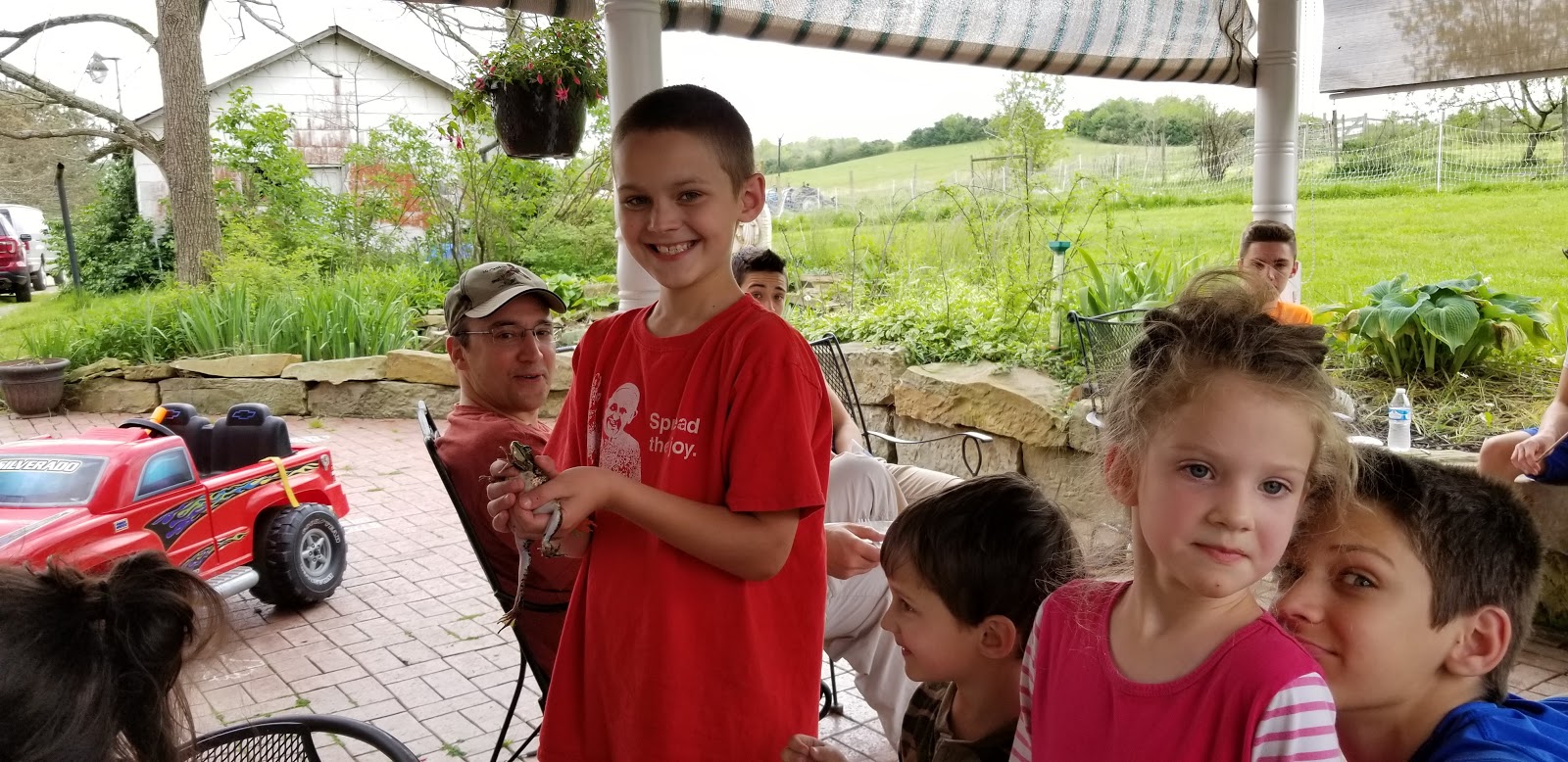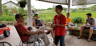 Sunday we were blessed to have Fr. (Uncle) Bill come for a visit and to enjoy coffee, cake, and ice cream with grandma and grandpa. We stayed outside on the patio with the bugs and frogs.
