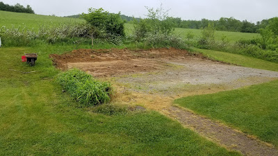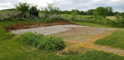 | Large gravel placed and spread on the expanded parking area, just waiting on the limestone topping for the entire drive. |
