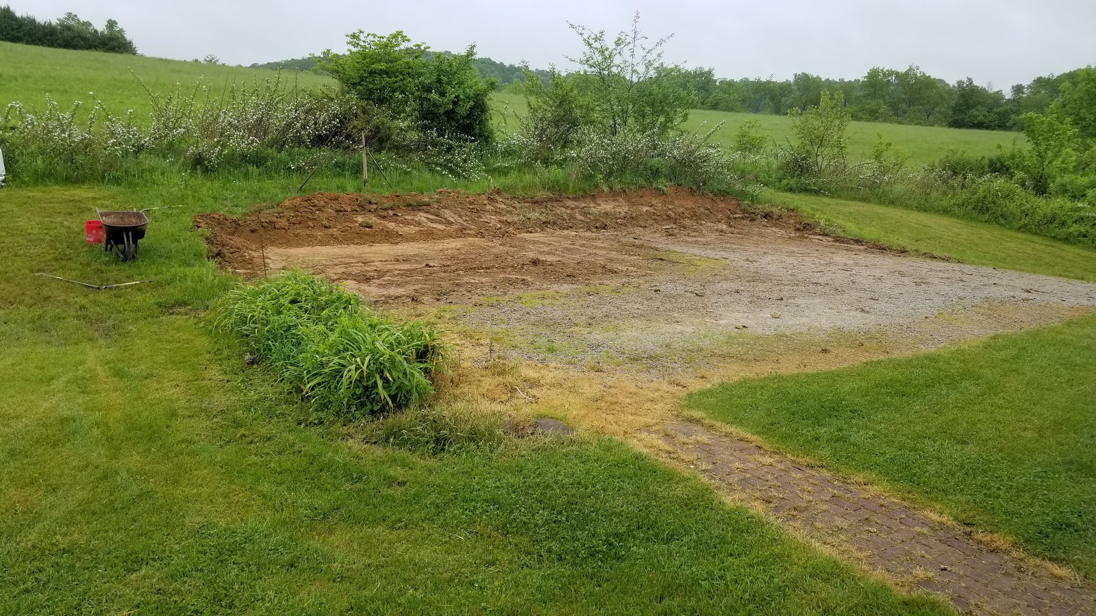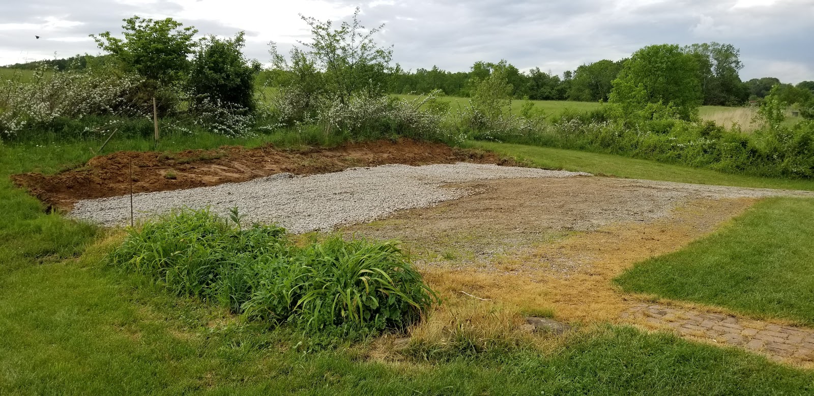 | Large gravel placed and spread on the expanded parking area, just waiting on the limestone topping for the entire drive. |