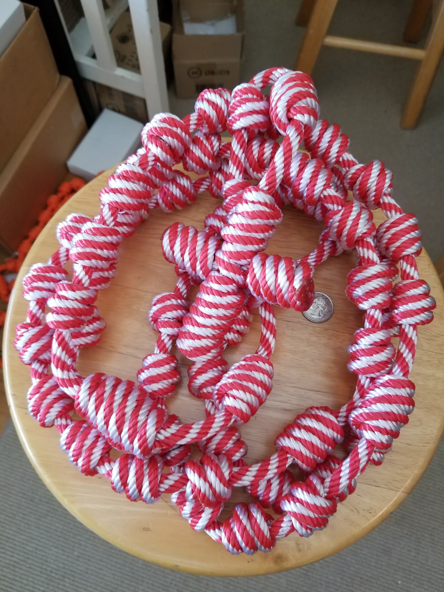 I’ve decided to make rosaries again but I won’t be competing with what they are making. Instead, I’ll only be offering the Giant Wall Rosaries. These are available through Etsy. They are made with 70 feet of rope and measure 6+ feet from the middle of the middle decade to the tip of the cross.
