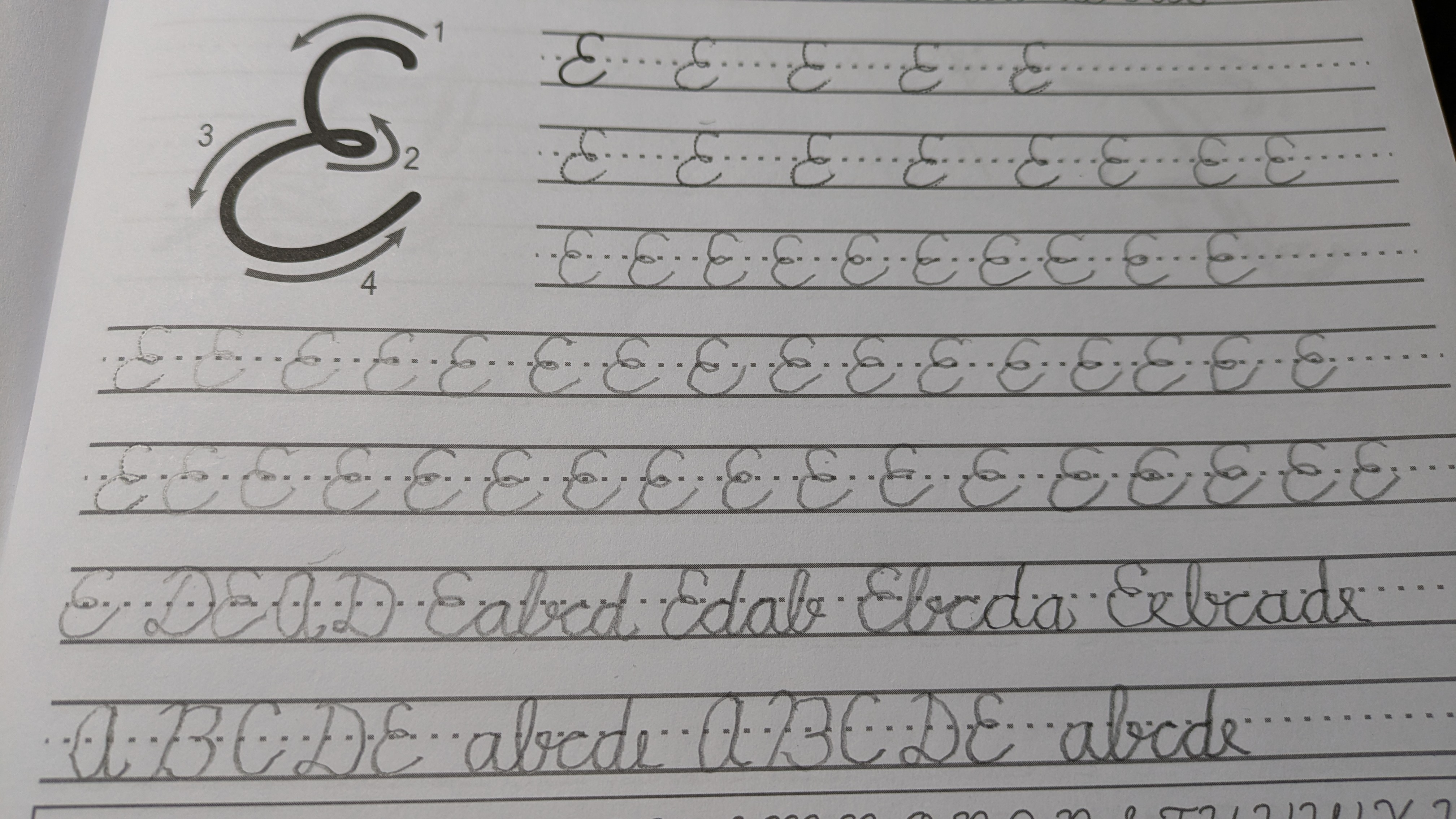 These capital E’s with my left-hand really challenged me. My perfectionism hinders me from trying sometimes but this left-handed cursive writing is both challenging and humbling. I did get some praise for my work from the kids. They were amazed that I’m doing this with my left hand.