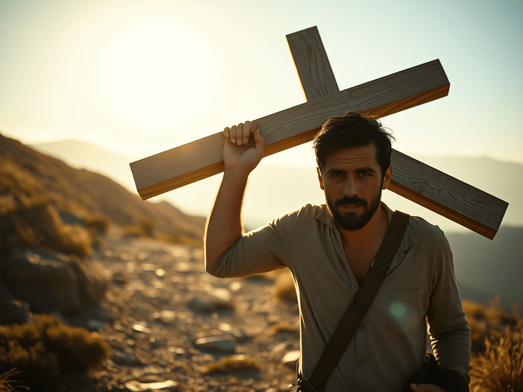 Okay, I’ll admit it. I’m okay with both the title and image. There’s really nothing for me to poke fun at today. So, instead I’ll share an A.I. image that was created for my Gospel meditation post today. I didn’t use it, obviously but WOW. What in the world??? “Take up your cross or whatever that is,” haha, enjoy….