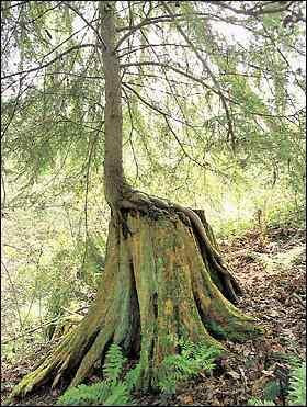 While mowing one day I noticed something interesting about the tree. About two inches above the ground a few branches had sprung forth. After about a month I noticed that there were close to a dozen small branches growing from this area close to the ground. The remainder of the tree was dead, brittle, and the bark was pealing away.