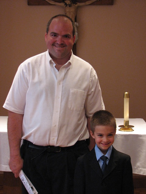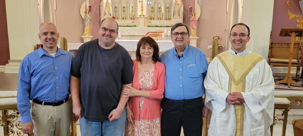 If you were to meet him today, he would not be shy in talking to you about the Ohio State Buckeyes, the weather, or fishing. He loved big-time wrestling, football (especially OSU and the Cleveland Browns), and of course food. If you stopped by my parents house you’d be invited to argue about football or invited to his Mass at the table in the dining room, complete with vestments and hosts provided by my brother, Fr. William Hahn. Each month he would gladly serve you pancakes, bacon, or sausage at the Knights of Columbus breakfast after Mass at the local parish with my dad.