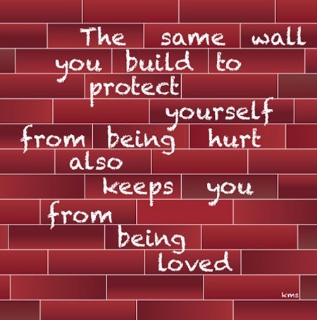 I thought my heart-wall was a sturdy defense but I later realized it was a prison cell that I had built for my heart. It kept pain out but it also kept love out. I was safe in its confines but I was also trapped; I was unable to get love out to others. I was so sure of my wall but as of late I have learned this lesson well: