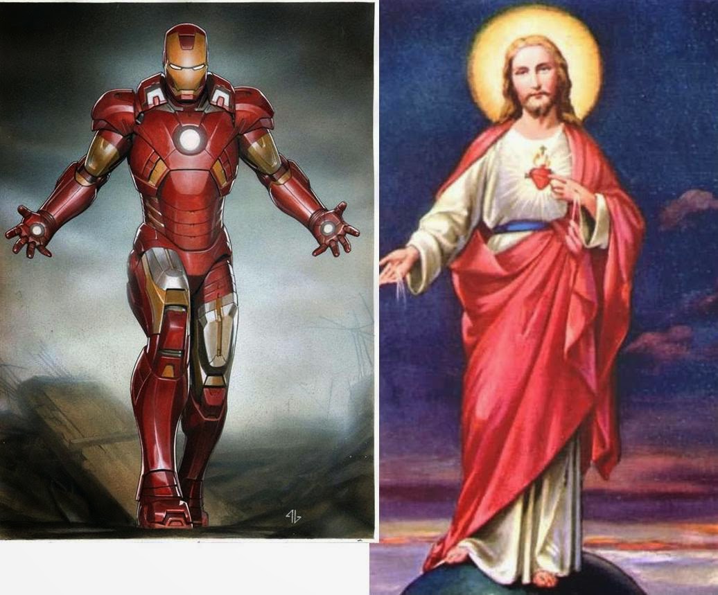 Of course every analogy ultimately limps but it is an interesting meditation to compare Jesus and Iron Man. Both hearts were pierced by those who hated them yet their “power” is from their “heart”. Both use their hands for good (be they lasers or rays of grace). Both have powers that go well beyond natural human ability.