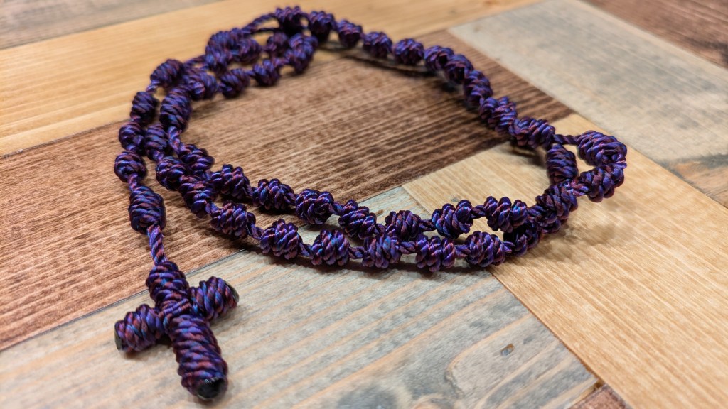 The cost of each workshop is extremely affordable. James only asks for a $50 transportation stipend for workshops within 100 miles of his home. Other than the transportation stipend, the cost is only $4 per participant which includes enough twine to make both a Single-Decade Chaplet and a full Rosary, a rosary making tool, and up to 2 hours of hands-on instruction. Alternatively, check out his videos on rosary making here for free.